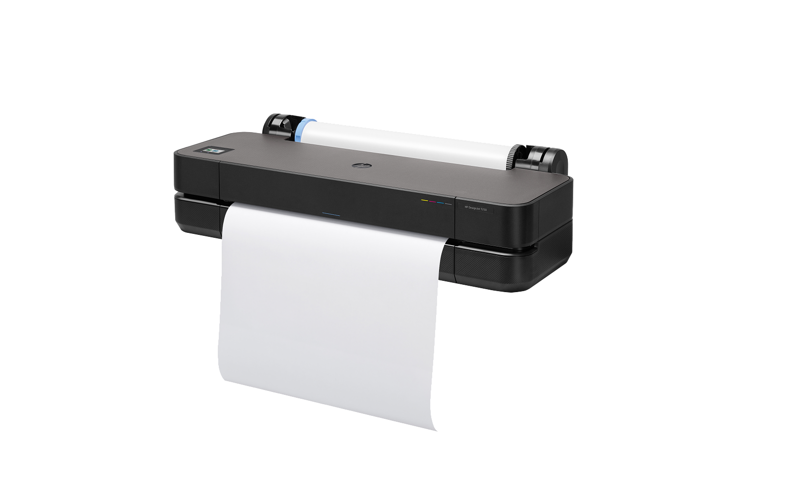 Impressora de grande formato compacta e eficiente, ideal para escritórios que buscam alta qualidade de impressão com baixo consumo de energia e impacto ambiental reduzido.