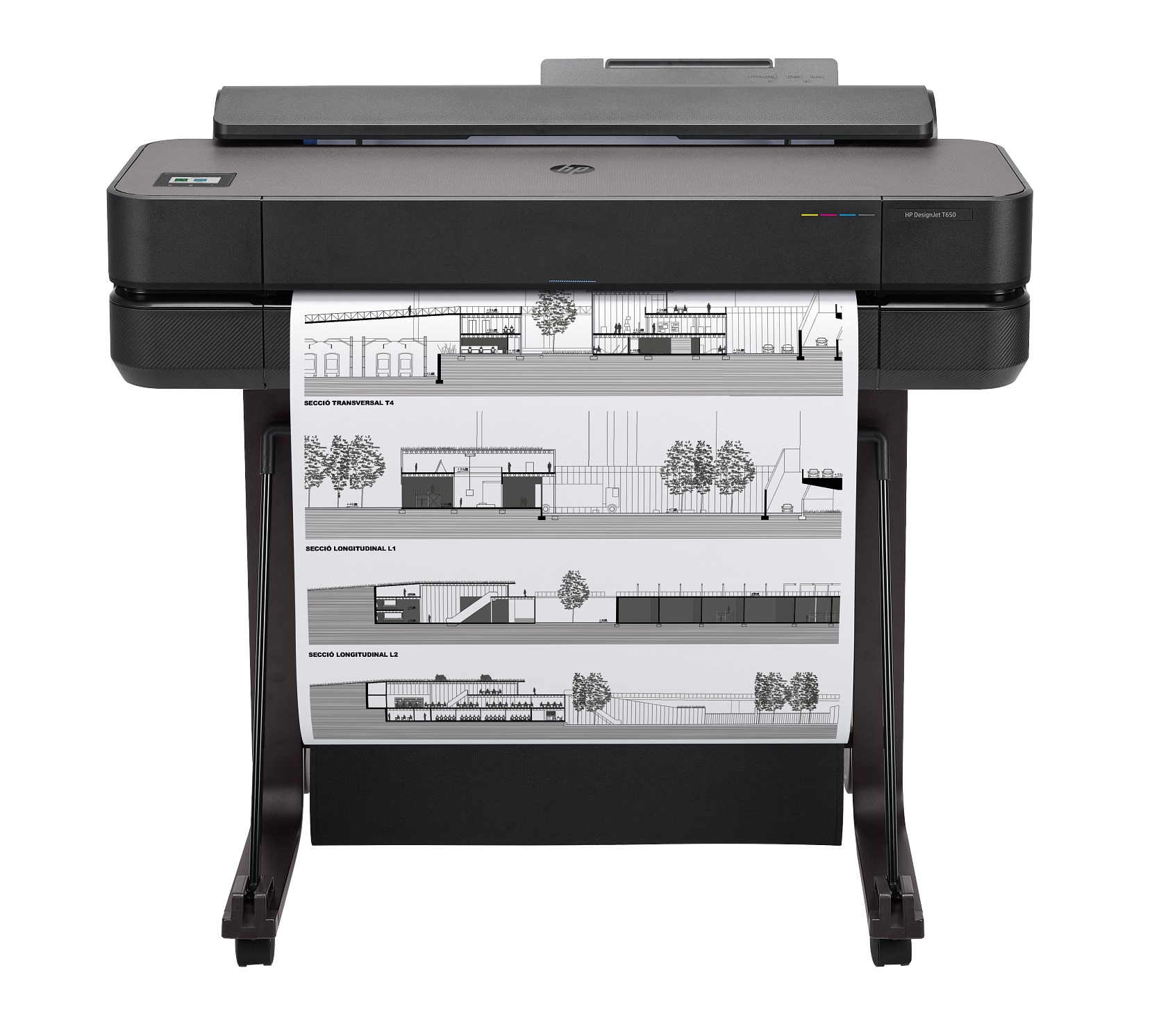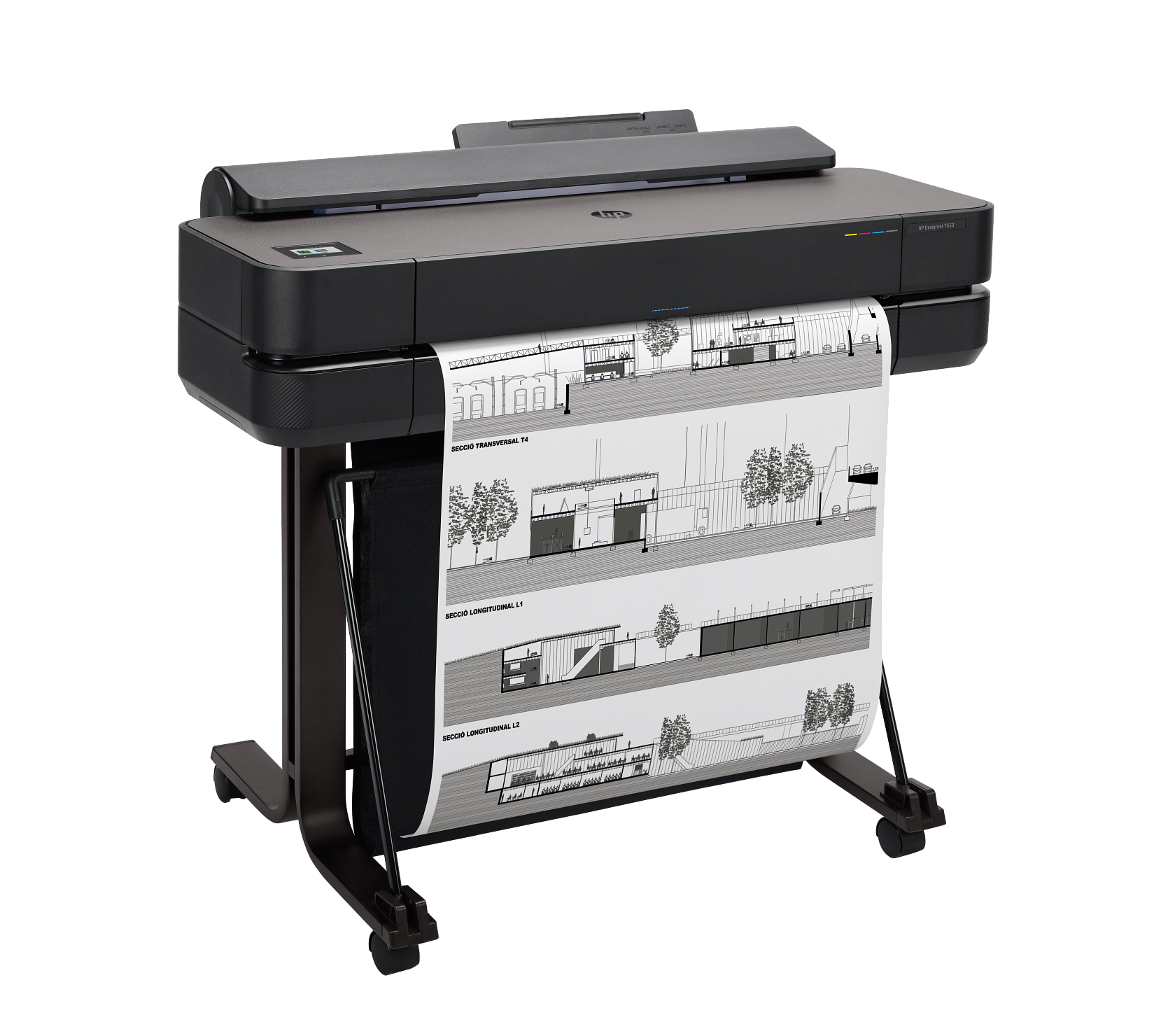 Impressora de grande formato compacta e precisa, ideal para ambientes técnicos que buscam alto desempenho aliado a práticas sustentáveis como uso de materiais reciclados e baixo consumo de energia.
