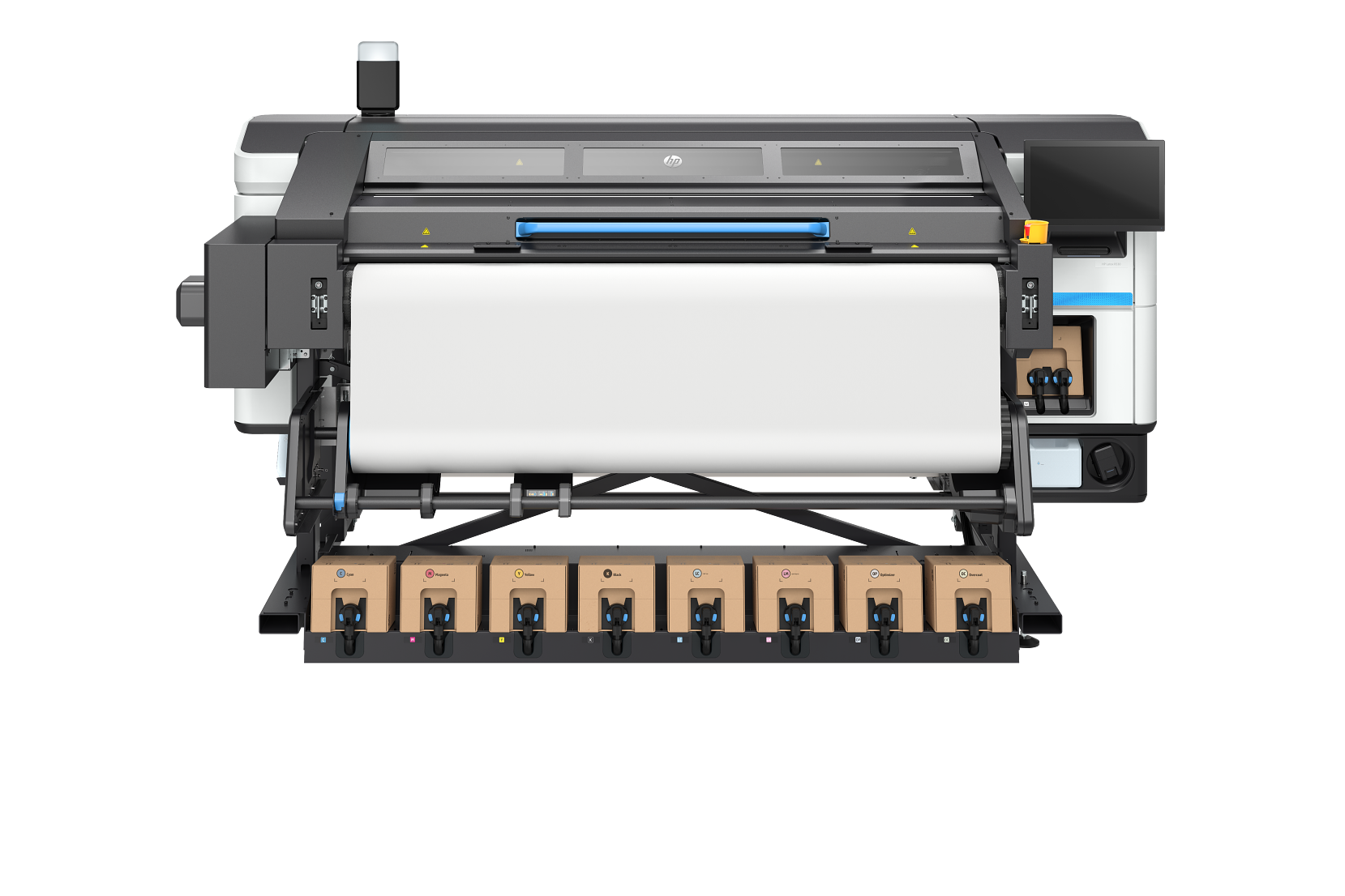 Cabeças individuais para cada cor; inclui cabeças para branco e otimizador (térmicas, substituíveis pelo operador)